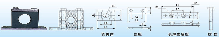 管夾體 | 蓋板 | 長(zhǎng)焊接底板 | 螺栓 | ||||||||||||||