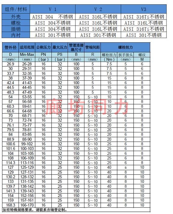 應(yīng)用領(lǐng)域:廣泛應(yīng)用于地面及地下輸油、輸氣、給排水中低壓管道的連接和修補;環(huán)保設(shè)備、食品設(shè)備、涂裝設(shè)備等設(shè)備管線的快速連接和修補;PE管線、不銹鋼管線、鍍鋅管線的低壓連接。